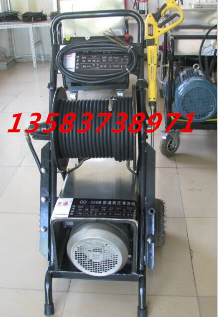 安源牌300B型管道高壓清洗機,用于疏通、清除管道中的堵淤和污物。本機選用7.5千瓦電動機為動力,選用意大利進口高壓泵,壓力為210公斤,流量為25升/分鐘,體積小、壓力大、清洗能力強。能清洗直徑為100mm--300mm,疏通能力50米。