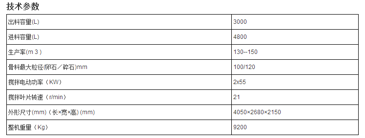JS3000強制式雙臥軸混凝土攪拌機每次出料為3立方米,也稱為3方混凝土攪拌機,循環周期是60S,180攪拌站主機使用的就是該機。