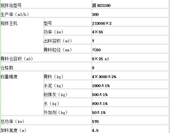 雙HZS180大型混凝土攪拌站技術參數