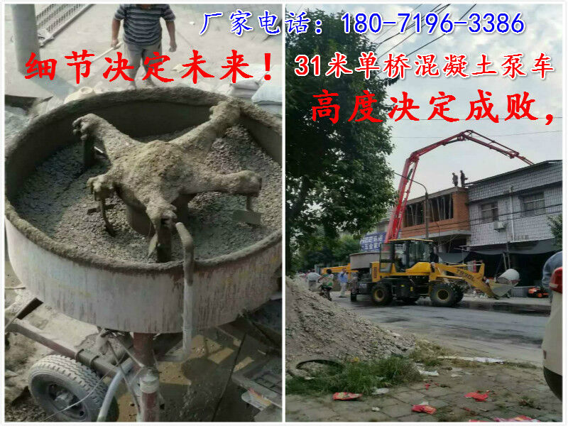 上裝配置:大四節臂垂直高度31米,采用高強鋼材料,混凝土輸送缸200mm.主油泵韓國傳奇K3V112,臂架油泵德國力士樂,混凝土輸送缸200mm-1600mm,50料斗。臂架為紅色,底座為黃色。