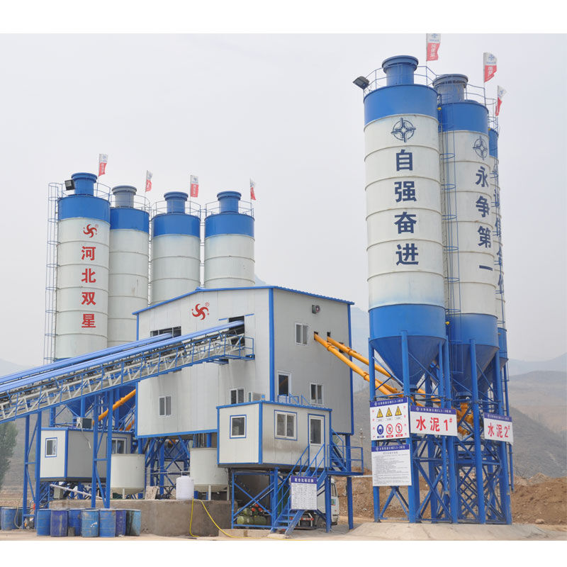 1.河北雙星HZS90混凝土攪拌站,該套混凝土攪拌站設(shè)備主機(jī)可配JS1500雙臥軸強(qiáng)制式混凝土攪拌機(jī)或進(jìn)口混凝土攪拌機(jī)。主機(jī)配有收塵機(jī),具有自動(dòng)收塵、去濕、排風(fēng)、將收集的粉塵向主機(jī)回送再利用的功能。收塵效果 極佳 。水泥倉(cāng)頂裝有圓筒式收塵機(jī),除塵效率高、噪音低。主機(jī)架采用彩鋼板包裝,整潔、美觀、防塵,具有 良好的 視野。雙帖合并安裝,既方便操作又節(jié)約場(chǎng)地。