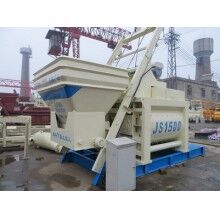 JS1500型雙螺旋帶混凝土攪拌機是由上料、攪拌、卸料、供水、電氣等部分組成。