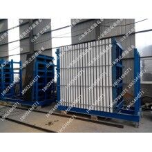 立式內墻輕質墻板生產線是我公司參照國內外等先進技術和經驗,經反復試驗研制成功的新產品。是外墻外保溫板實現工廠化生產的重大發明,已申請多項國家專利。本生產線有全自動攪拌系統、自動制板機、自動切割鋸、群鉆三部分組成。