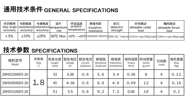 兩相1.8°混合式步進電機20系列步進電機