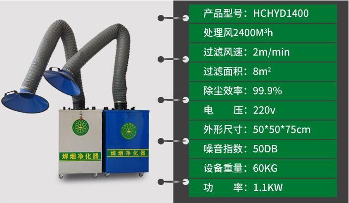 2. 利用可360度隨意活動的萬向臂,可從煙氣發(fā)生處吸除煙氣,大大提高了煙氣的收集率,保證了作業(yè)人員的健康。