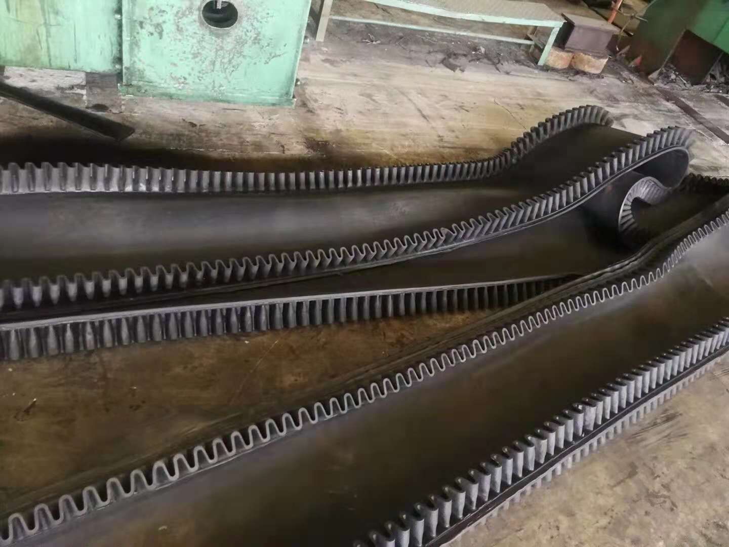 基帶、擋邊、隔板的粘接:大傾角波狀擋邊輸送帶采用二次同步低溫連續(xù)硫化的先進(jìn)工藝,提高了粘合強(qiáng)度,并避免因多次高溫硫化而老化基帶。