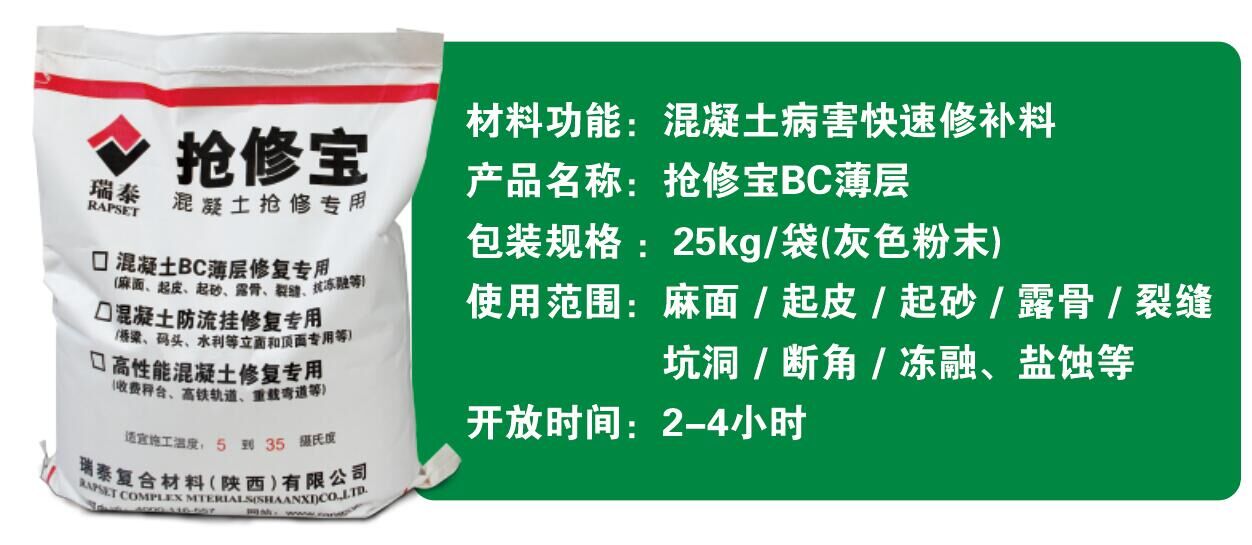 5、耐久性能:較快的早期性能體現和較高的早期強度,且后期不衰減,對很多病害部位可做到一次性根除;材料本身有很強的防水、抗凍、耐酸鹽腐蝕和抗紫外線能力,其抗老化能力是原水泥混凝土的5倍以上,性能衰減不會早于原混凝土,不會因老化而失去粘接能力和抗壓強度。