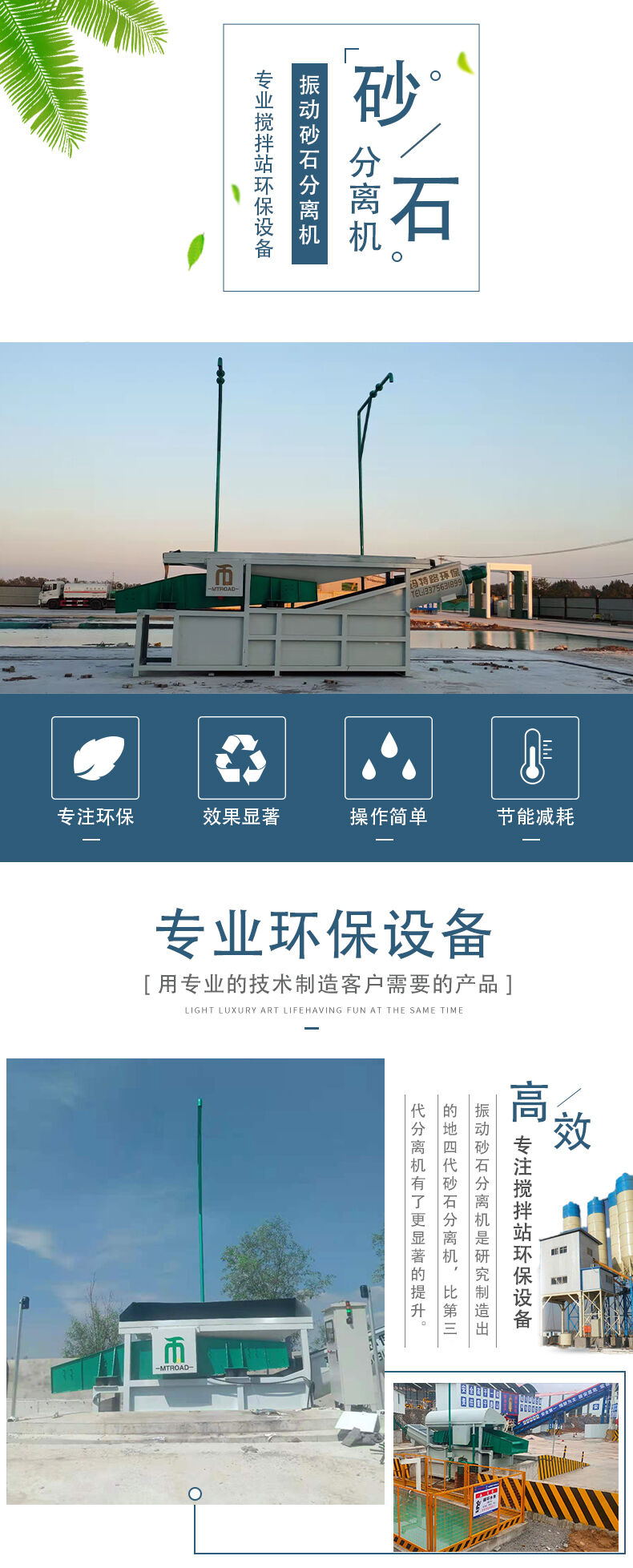 振動式砂石分離機是經過多年現場經驗改進,研發出的目前效果比較好的砂石分離機。通過直線振動篩的原理,將比重比較大的石子分離出來,避免了螺旋洗砂機的負載過大。溢流板比較高,灰漿水中含沙量比較低。整機自動化控制,結構緊湊、操作方便。