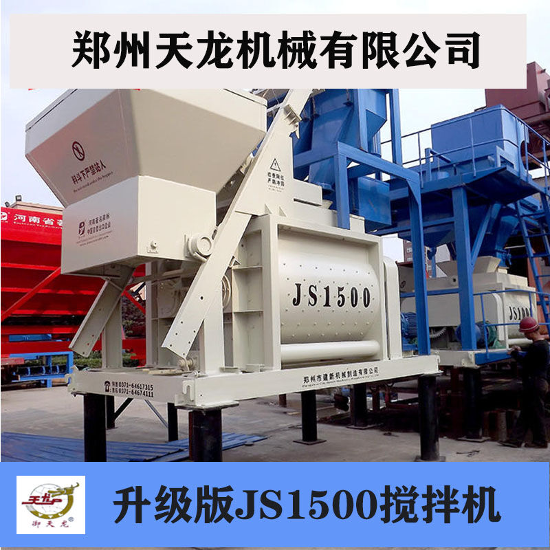 JS1500型混凝土攪拌機每次出料為1500公升,是鄭州天龍成熟的產品之一,在國內首屈一指,該型號攪拌機攪拌能力強,工作效率高,既可獨立作業,也可用作HZS50HZS60攪拌站的主機,與配料機組成簡易的5060型混凝土攪拌站。