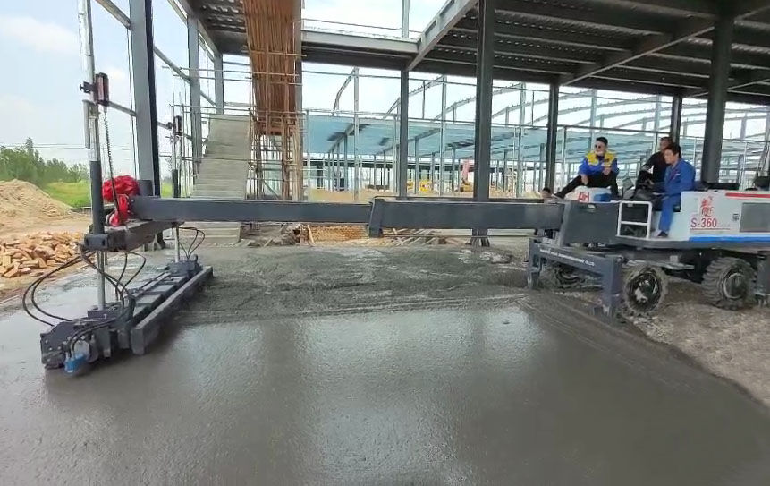 混凝土激光攤鋪機是用刮板將高出的混凝土帶走并初步刮平,達(dá)到設(shè)計要求的標(biāo)高。液壓驅(qū)動振動馬達(dá)產(chǎn)生震動,頻率為6000次/分鐘,帶動整個振動板一起對混凝土產(chǎn)生振搗。激光攤鋪機找平不需要拉控制線,也不需要支側(cè)模板來控制地面標(biāo)高,而由攤鋪機上的激光測控系統(tǒng)實時控制,只要激光發(fā)射器不受干擾,無論攤鋪機移動到哪里,都能確保鋪筑后的地面整體上的標(biāo)高不受影響。混凝土激光攤鋪機是一種以激光為基準(zhǔn)平面,通過實時控制整平頭,從而實現(xiàn)混凝土高精度、快速整平的設(shè)備,是降低企業(yè)施工中成本支出的手段。在經(jīng)濟(jì)蕭條下,地坪企業(yè)會通過選擇激光整平機方式施工,節(jié)約固定投資、降低人工成本,降低運營成本。實際上,企業(yè)選擇混凝土激光整平機的理由并非只有這些。 自動化程度高,勞動強度小,采用激光整平機等設(shè)備使繁重的體力勞動變?yōu)橛脵C械攤鋪、振搗、找平、提漿、抹面,使操作人員減少30%,同時減輕勞動強度。經(jīng)濟(jì)效益高應(yīng)用激光整平機等設(shè)備,比傳統(tǒng)工藝節(jié)省成本2-3元/㎡,分縫少,后期維護(hù)費用降低,從而使經(jīng)濟(jì)效益明顯提高。