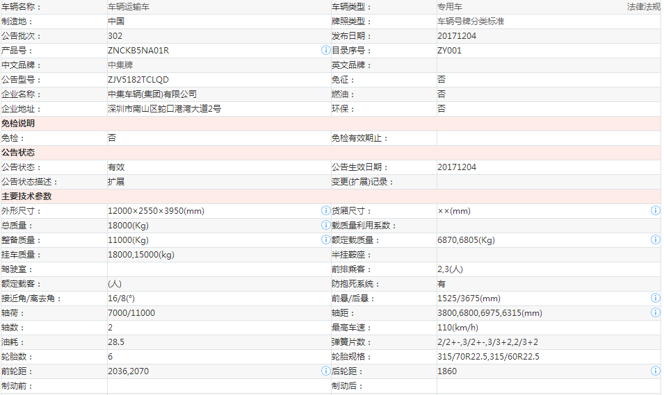 歸屬行業:ZJV5182TCLQD中集車輛運輸車