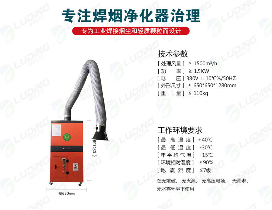 焊接煙塵又稱為電焊煙霧,是指焊接操作中經常會產生一些有毒的物質。如:乙醛、松香酸、異氰酸鹽、氮氧化物、硫化物、碳氫化合物等。焊接煙塵是一種十分復雜的物質,lans已在煙塵中發現的元素多達20種以上,其中含量多的是Fe、Ca、Na等,其次是Si、Al、Mn、Ti、Cu等。焊接煙塵中的主要有害物質為Fe2O3、SiO2、Mao、HF等,其中含量多的為Fe2O3,一般占煙塵總量的35.56 ,其次是SiO2,其含量占10~20 ,Mao占5~20 左右。