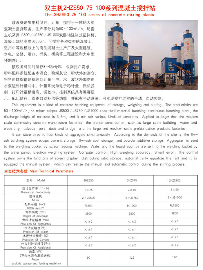 歸屬行業:雙主機2HZS75混凝土攪拌站