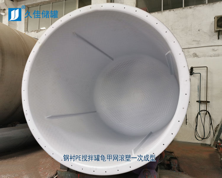 將鋼網(龜甲)焊接于鋼體表面,以改性聚乙烯為原料,采用旋塑工藝(滾塑技術)一次整體成型于鋼體表面。