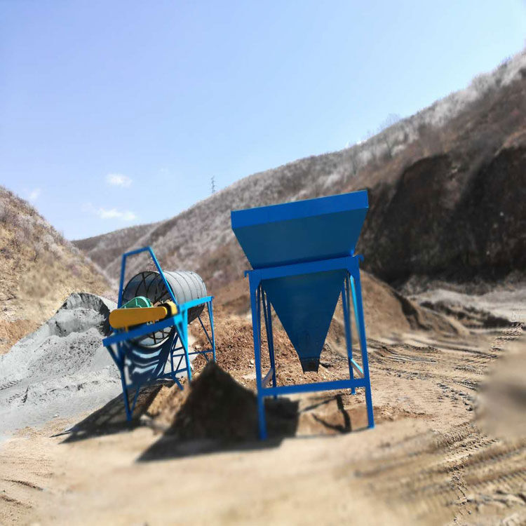 整個設備由原料儲料斗、原料供料皮帶機、平置篩網、成品砂堆料皮帶、棄石出料槽等組成,設備通電運轉后由裝載機將原料裝入大容量儲料斗,原料經由供料皮帶投入到平置篩筒,旋轉的篩筒帶動原料在筒內葉片的推擠、翻滾下形成原料在篩網面滑滾的人工篩砂效果,篩出的成品砂通過集料斗落在成品砂皮帶上,同時被皮帶提升落下呈成品料堆、或直接落入儲料斗,整個過程連續且物料分級清楚、準確。