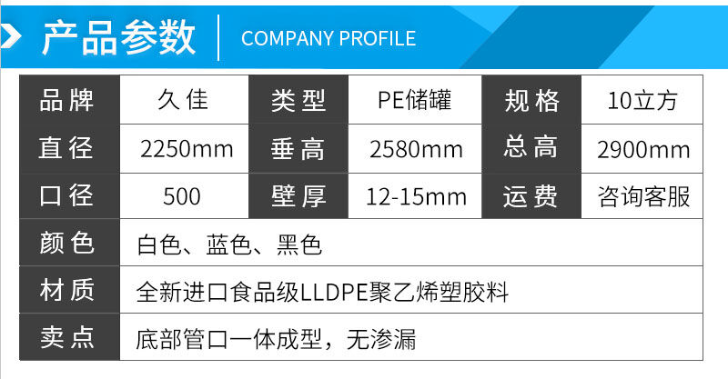 2、久佳儲罐采用進口韓國進口644線性低密度(LLDPE)原料,韌性和強度均優于其他原料,符合中國食品衛生檢測標準。可提供合格證、檢測報告等文件