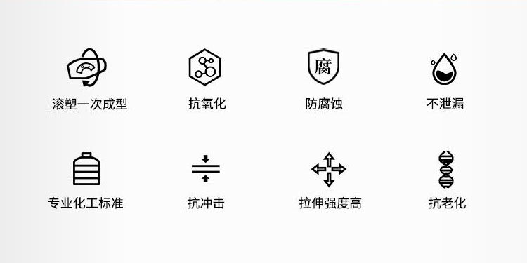 1、以進口LLDPE為原料,采用滾塑一次成型;