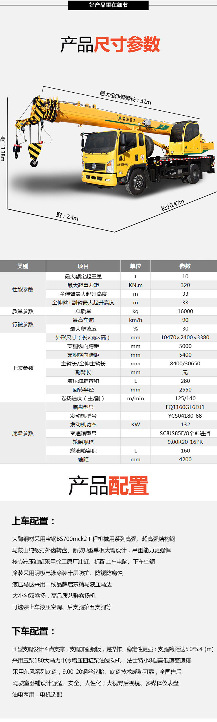 森源十噸汽車吊適用于狹窄工況的小型吊車 東風