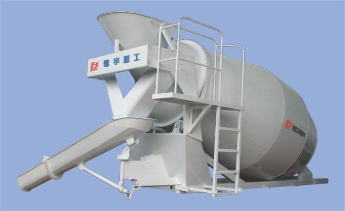出料:改變攪拌筒的轉動方向,并使之“反向”轉動,使混凝土在葉片螺旋運動的頂推作用下向筒口方向移動,最后流出筒口,通過固定和活動卸料溜槽卸入混凝土泵的受料斗或其它工作容器。