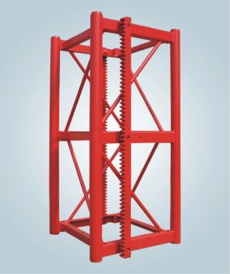 吊籠為一鋼結構件,四周有堅固的鋼絲網,并設有進、出口門(即單、雙籠開吊籠門),由安裝在吊籠上的滾輪沿導軌架