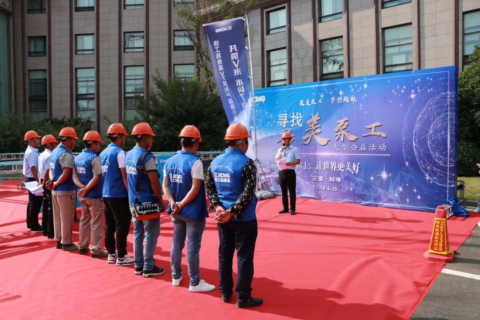 6月15日符忠軒會長一行參加了徐工集團在安徽蚌埠舉行的v7系列產品推介會暨尋找“最美泵工”大型公益活動。出席本次活動的有蚌埠市混凝土協會會長袁寶超,徐工施維英總經理、黨委書記王貴,徐工施維英黨委副書記劉一帆,徐工施維英副總經理徐懷玉,以及來自淮海區域標桿客戶及客戶代表,泵工代表等。