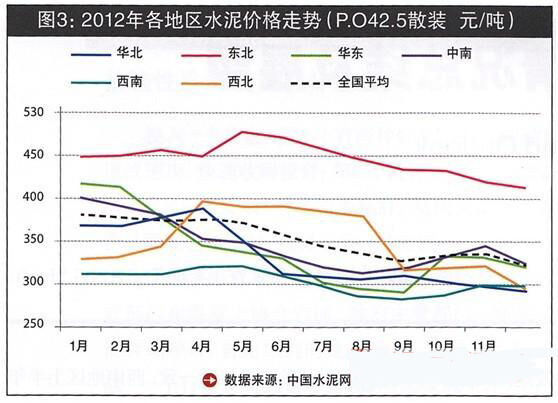 商品混凝土價格主要取決于成本方的水泥價格及需求情況,2012年全國水泥價格呈現前高后低的"U"型走勢,東北地區價格保持在全國最高位運行,西南成為全國水泥價格凹地。