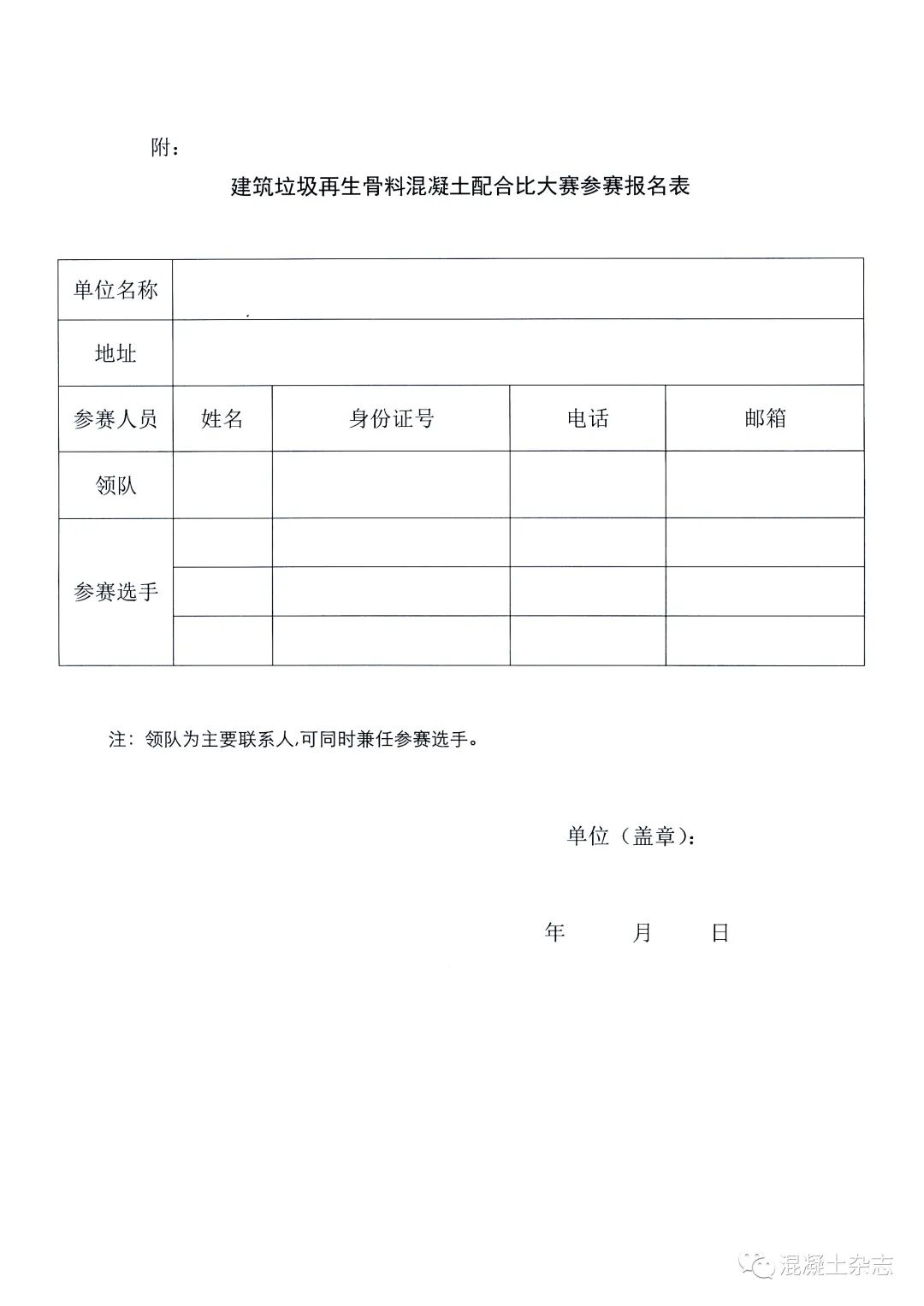 關于舉辦建筑垃圾再生骨料混凝土配合比大賽的通知