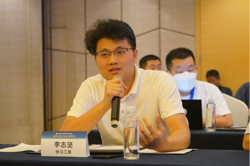 湖南快馬工服信息科技有限公司總經理李志堅對混凝土行業的攪拌站后市場服務情況和標準服務門店建立情況進行了介紹。