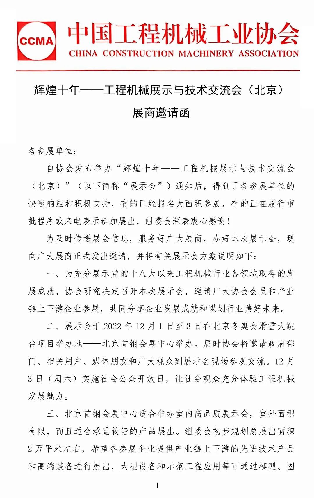 展商邀請函:輝煌十年——工程機械展示與技術交流會(北京)