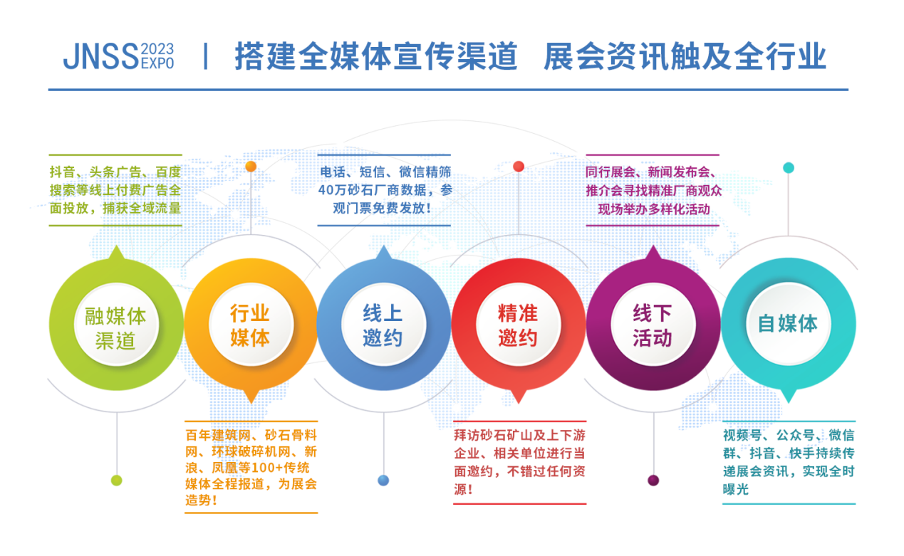 2023濟(jì)南砂石招展將持續(xù)加強(qiáng)宣傳力度,匯集線(xiàn)上線(xiàn)下、全方位、多角度優(yōu)質(zhì)買(mǎi)家,助推展商品牌打造與貿(mào)易合作。