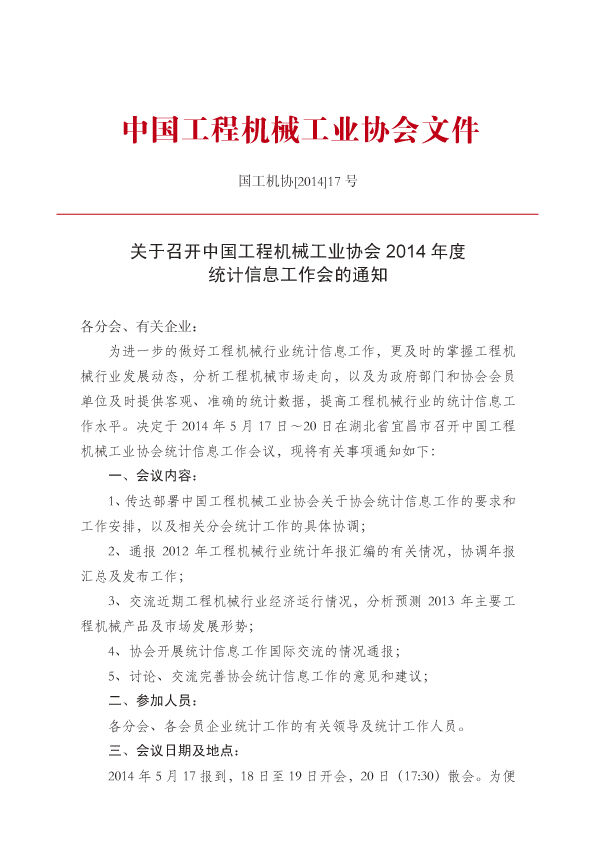 國工機協(xié)2014年17號文協(xié)會統(tǒng)計工作會議通知