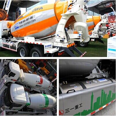 中聯重科與三一重工在bauma2014展示的天然氣攪拌車,配置450L氣瓶,綜合行駛里程在400km左右。