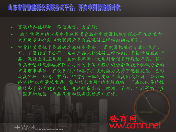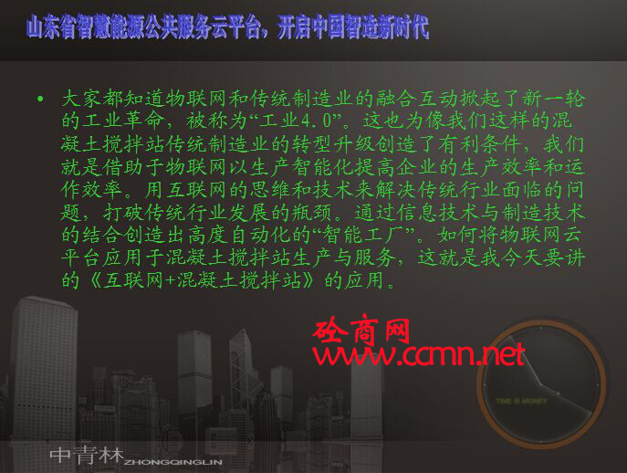 山東智慧能源公共服務平臺于6月16日開通,該平臺可以實現對鍋爐、電梯、變頻機組、分布式光伏電站、熱力管網、等運行數據實時在線采集和分析控制,為中小企業提供能源管理服務。青島新型建設機械有限公司以徐君飛徐總為代表參加了本次服務平臺開通儀式,徐總在現場就物聯網云平臺對攪拌站的管理服務進行闡述。